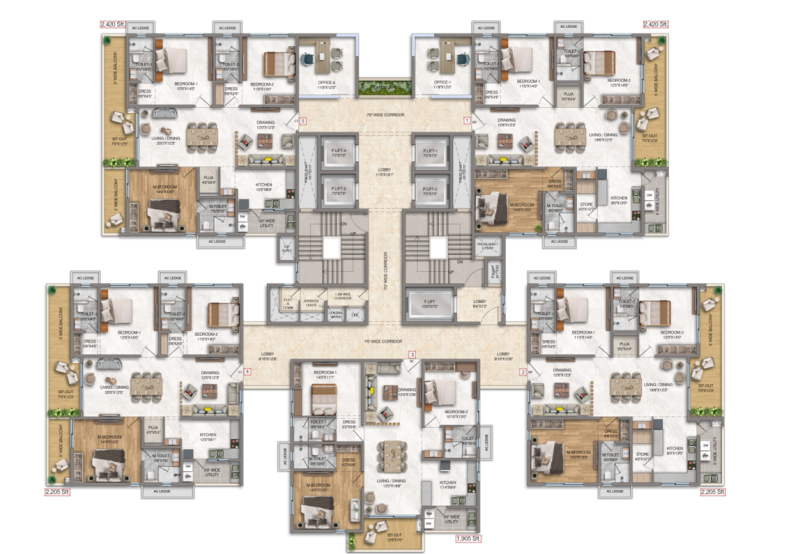 • Unit Size: 1905-2205-2420-2800