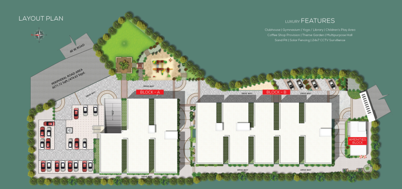 Clubhouse: 4000sft,G+4 with all amenities.