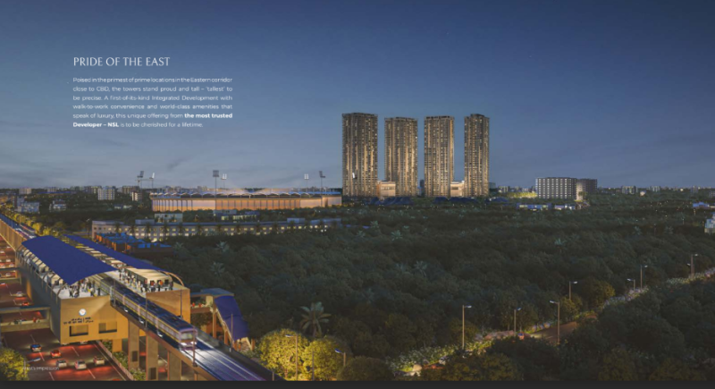 NSL East Luxoria is an upcoming luxury residential project by NSL Infratech Pvt. Ltd., situated in the upscale locality of Uppal, Hyderabad. Spanning approximately 7 acres, the development comprises four high-rise towers, each with 44 floors, offering a total of 1,032 meticulously designed 3 and 4 BHK apartments.