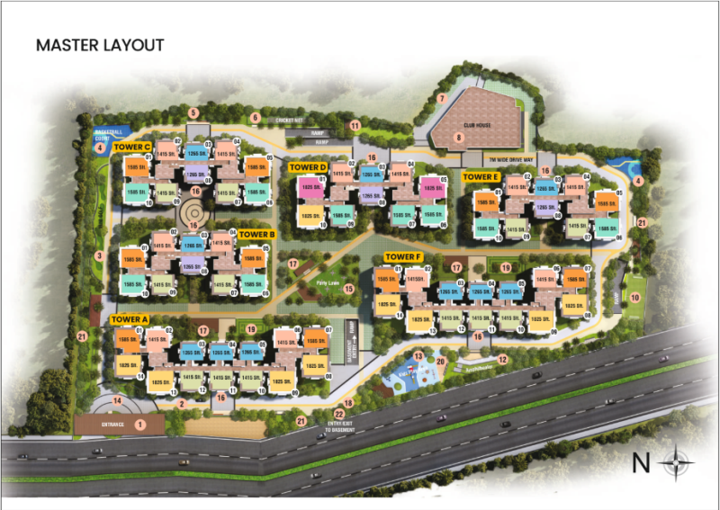 Clubhouse Features (50,000 sq.ft.): Gymnasium, multipurpose hall, guest rooms, library, supermarket, spa/salon, indoor games, cafeteria, crèche.