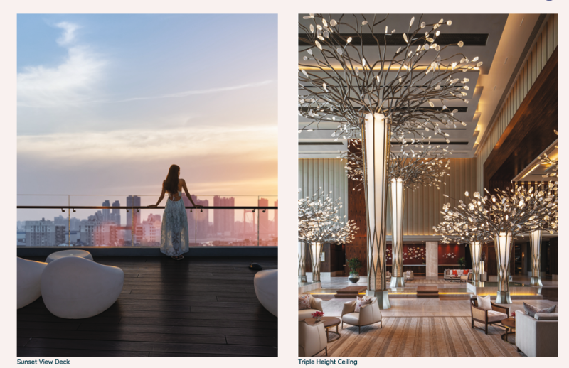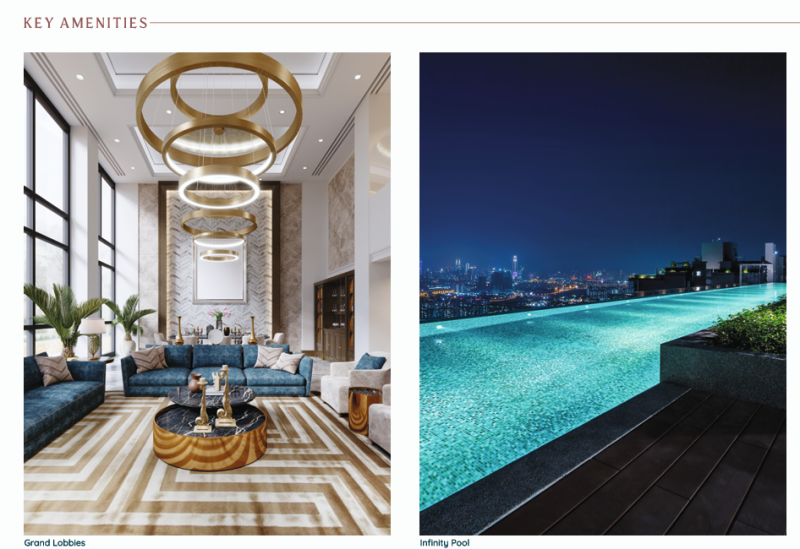- **Entrance Lobby:** A 5-star style entrance lobby with water features and aroma gardens.